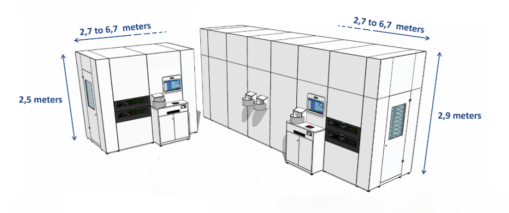• Easy Phasys peut stocker entre 3,200 et 18,700 paquets, selon la configuration choisie. Cette flexibilité permet de s’adapter à diverses tailles d’emplacements et de besoins en stockage.